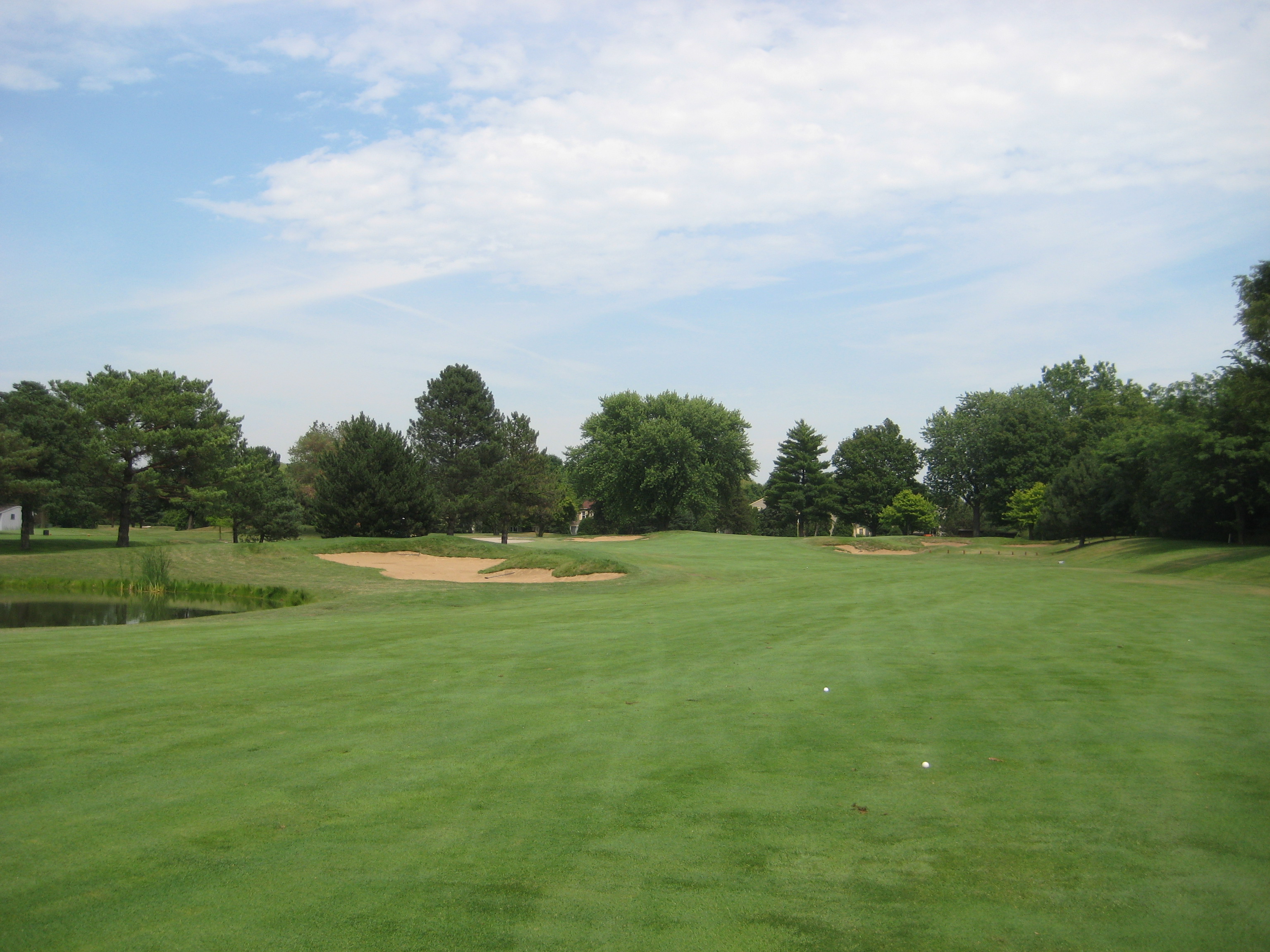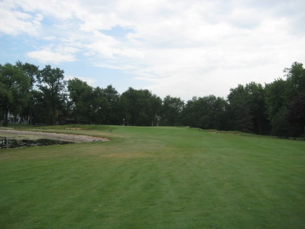 13th Hole: Par 4, 363yds. 13 is a fun hole if you want to take some risk. Big hitters can take their tee shot over the trees on this dogleg right and leave themselves with a short approach shot. The risk comes with water on the left about 280 from the tips and a narrowing fairway past the trees. The other option is to take a fairway wood and leave it short of the water. This hole is a good birdie opportunity either way you go.