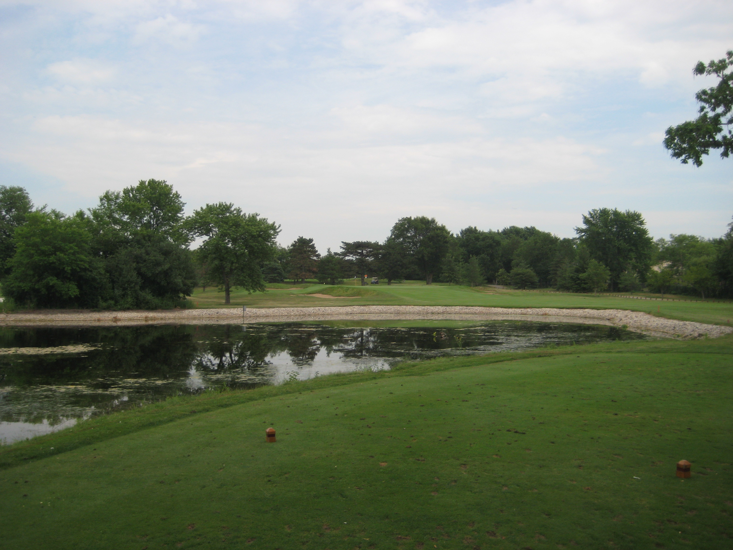 4th Hole: Par 4, 381yds. The 4th is a straight par 4, so take your drive right at the 150 yard stick and you will be in good shape for your approach.