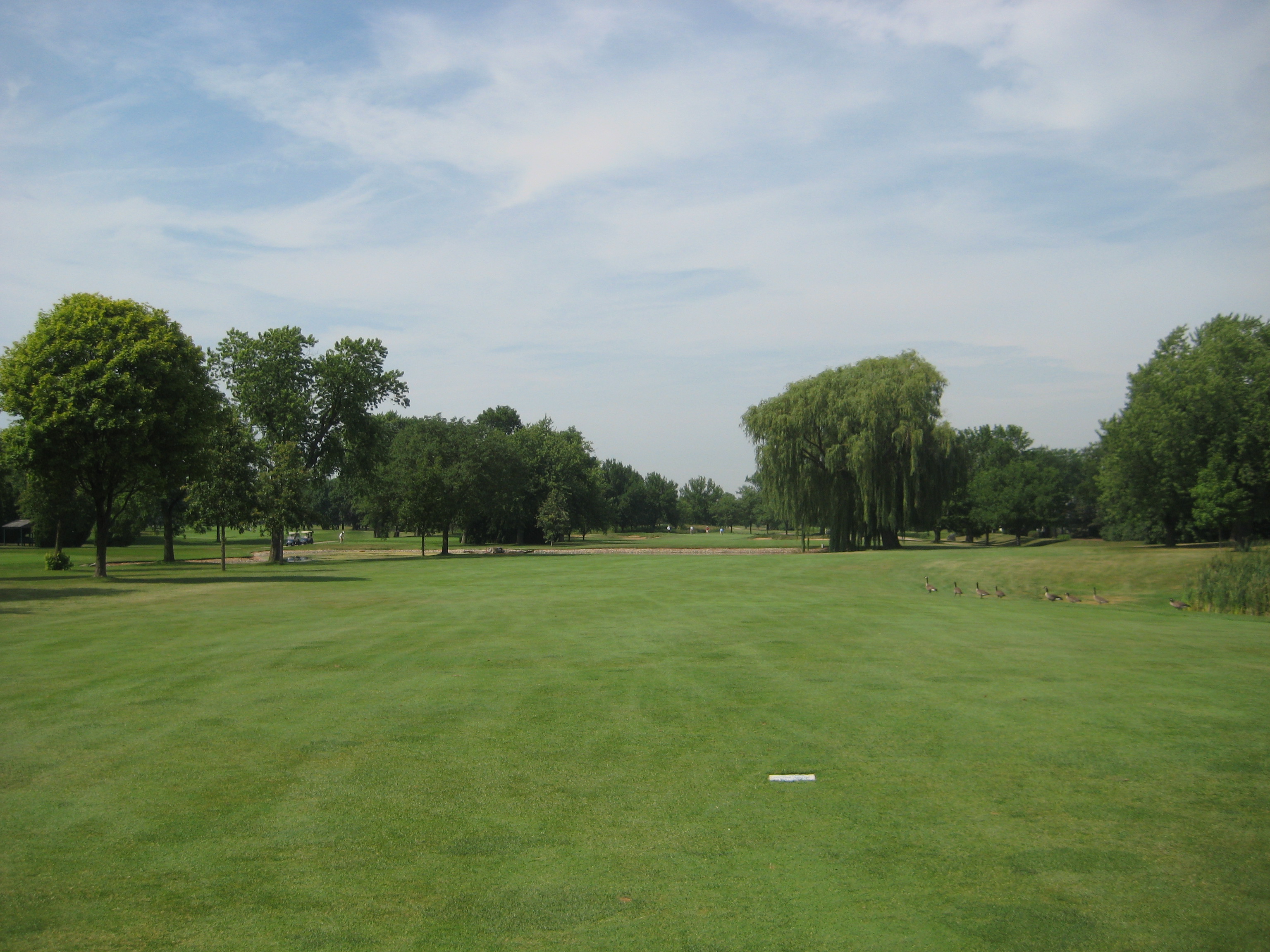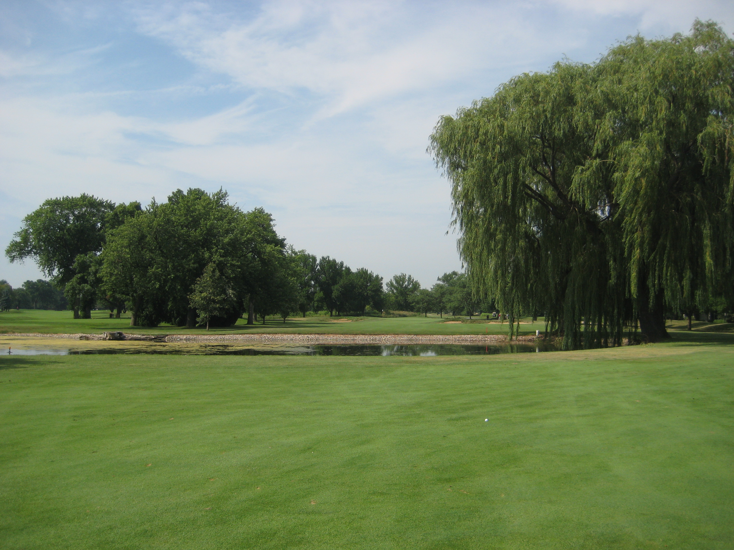 17th Hole: Par 5, 544yds. 17 in my opinion is the toughest hole on the course. Choosing the right club on this hole is very important on each shot you will make. You have water off the tee on both sides to deal with, and fairway bunkers on both sides to try and avoid. After your tee shot, hoping you are safely in the short grass, you are faced with a decision to layup short of the water, or fly your ball over the water and past the huge willow tree to safety. After that it is smooth sailing, but how many shots did it take you to get the green?