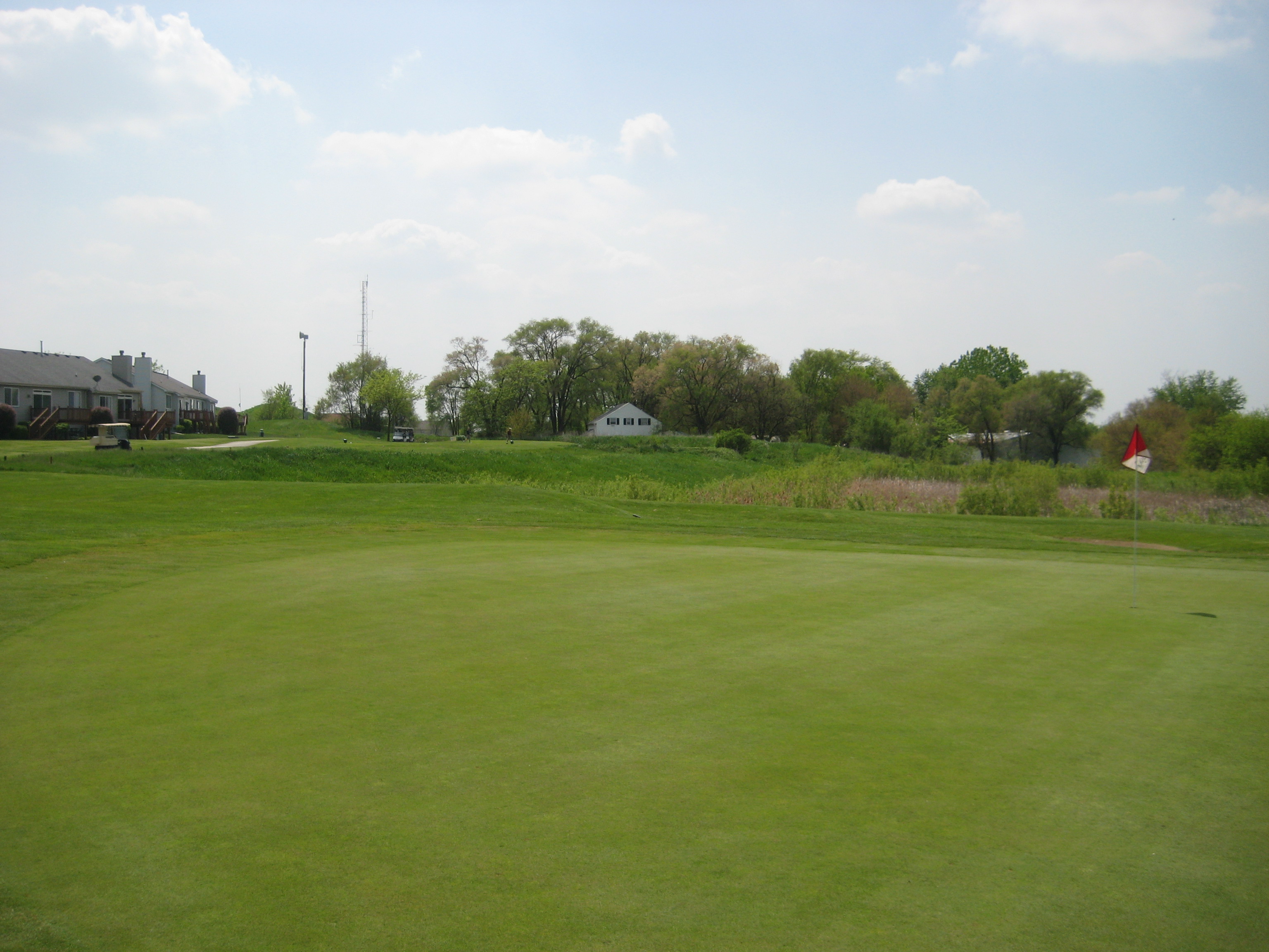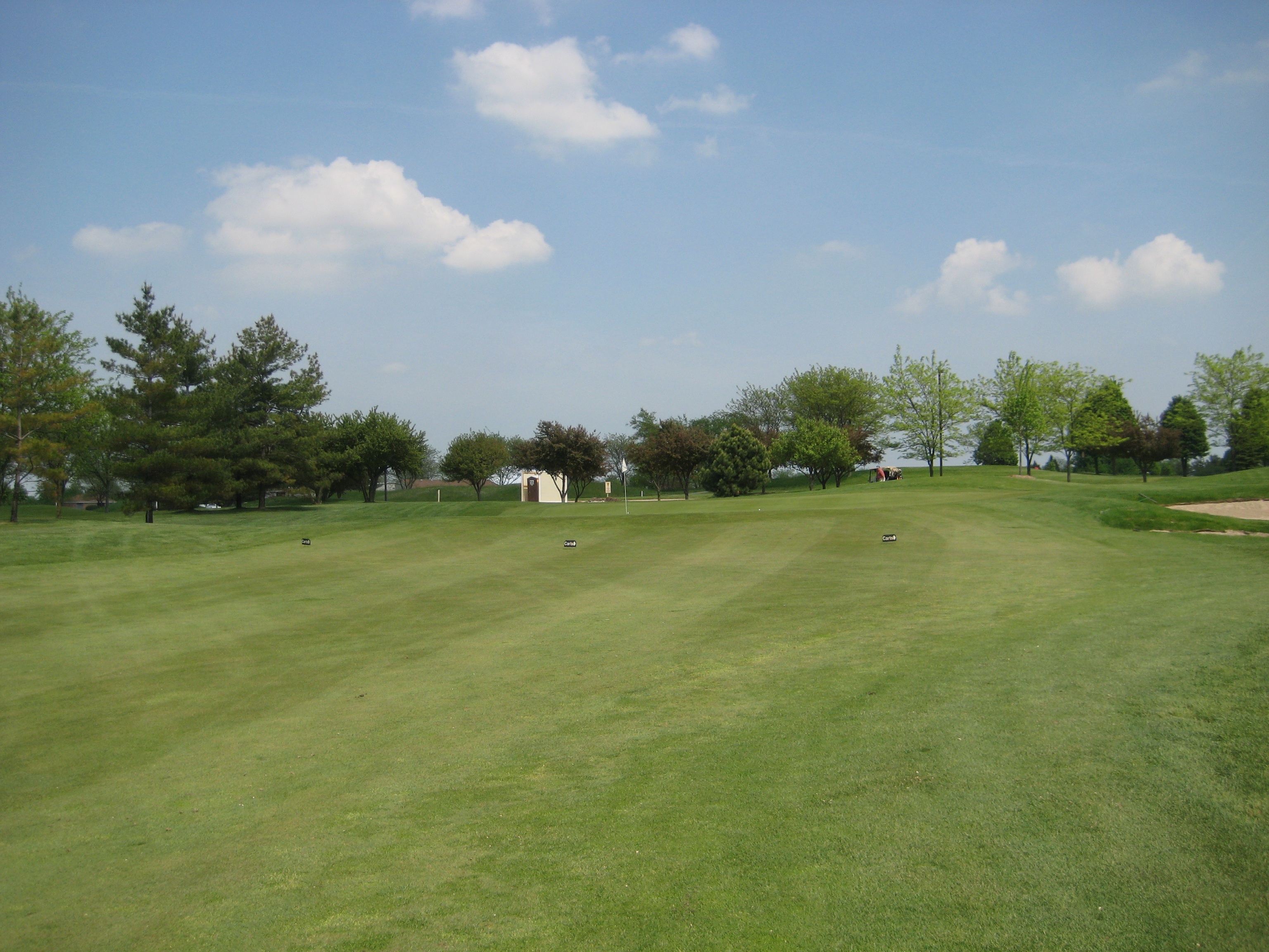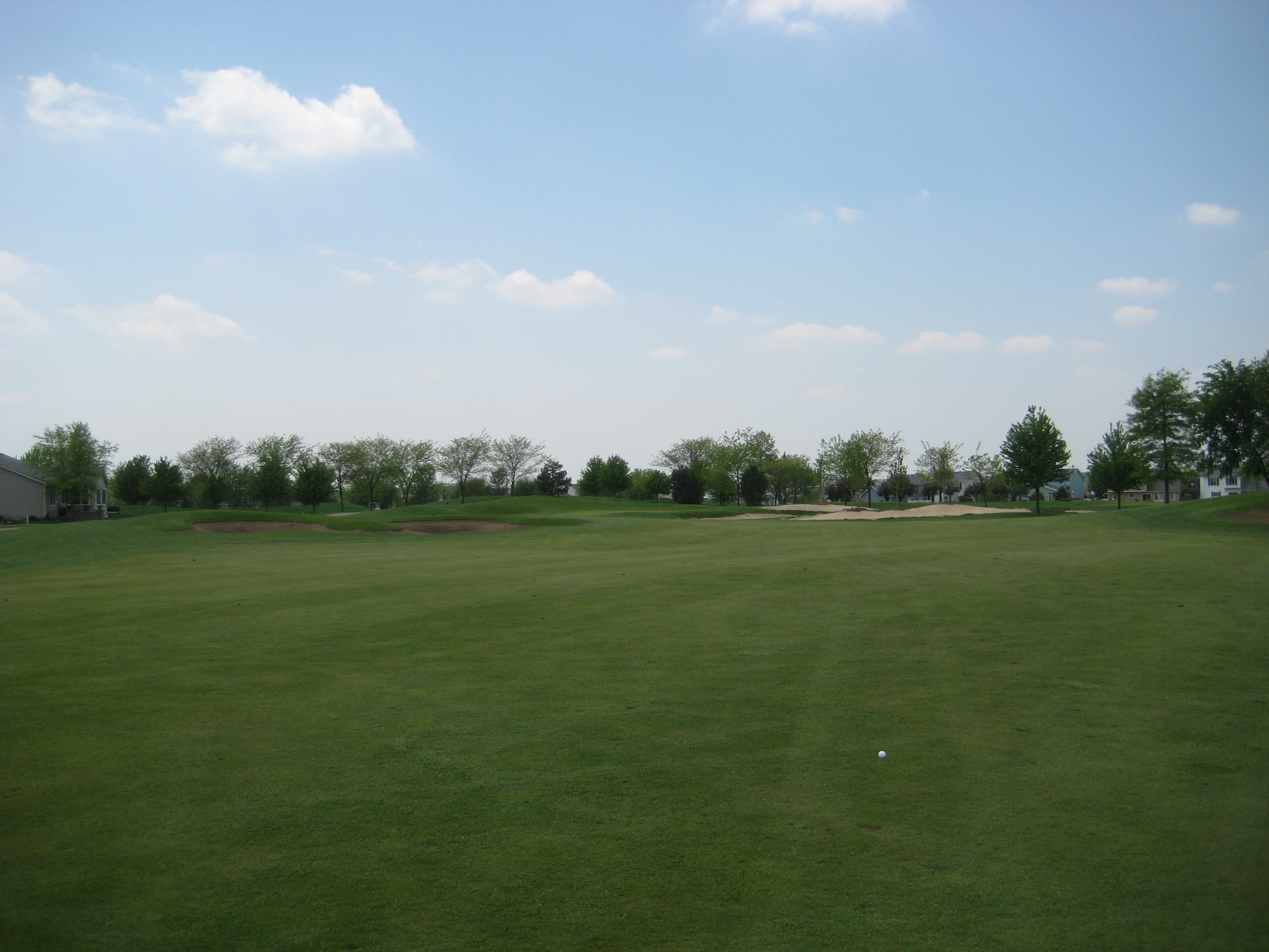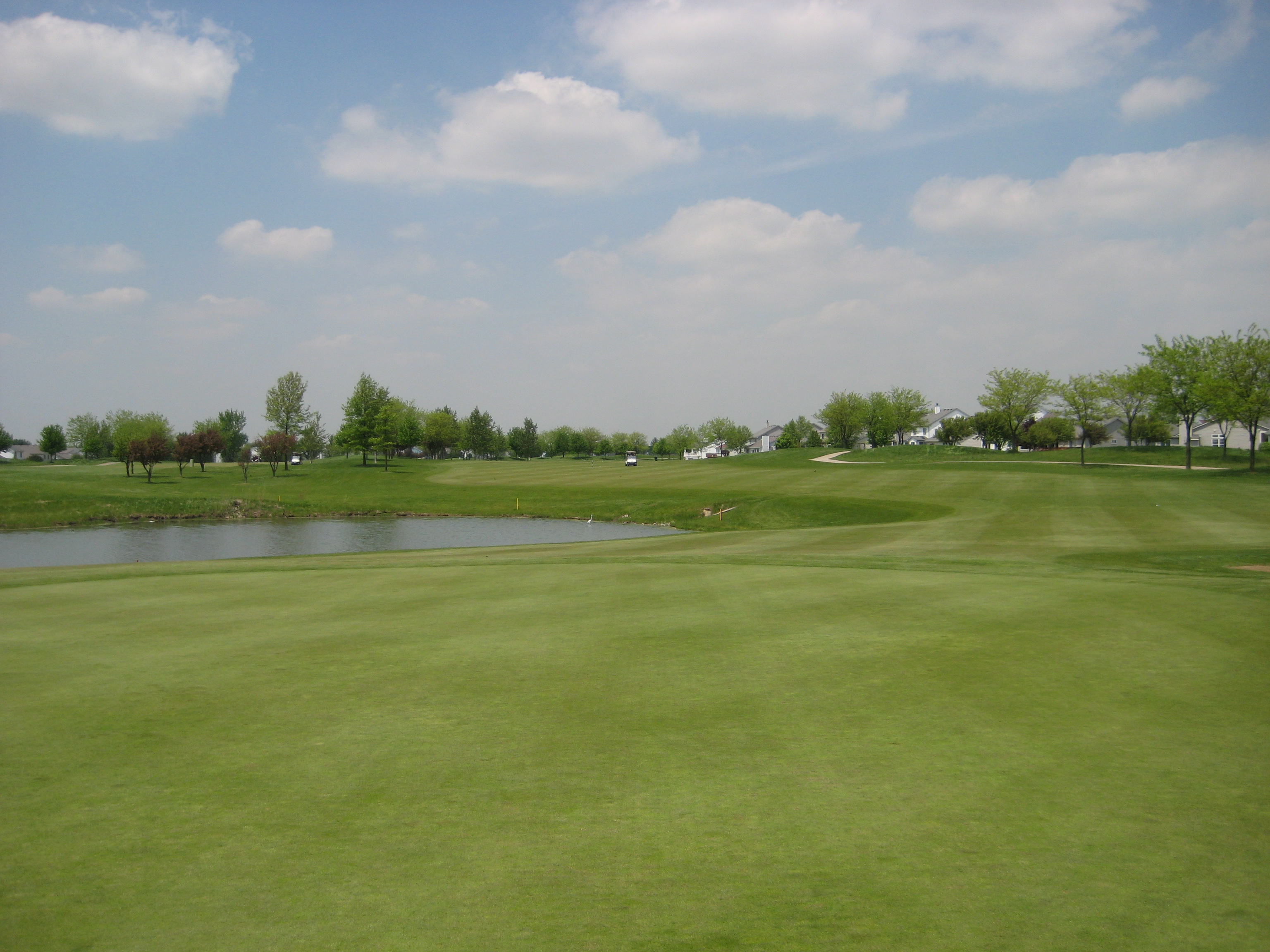 So I have finally played a round in 2011. It has been a long wait but the sticks have finally touched the grass. The weather in Chicago has just been miserable this spring, but my season has begun. My first round of the year was played at The Links at Carillon in Plainfield. The Links was a perfect course to kick off the season and shake the cobwebs off. The Links at Carillon is a 27 hole facility, and I got the chance to play the Red and White courses. The Red course played at 3,391 yards with a rating/slope of 72.5/125. The White course played at 3,438 with a rating/slope of 71.1/123. Both courses are very similar in layout and condition, and I believe the Blue course is as well, but a little shorter in yardage. Overall, the course was extremely flat with not that much undulation in the greens except for a few holes. I found that the course provided many challenging holes, but the par 3s were a big disappointment……no wow factor there. The course is surrounded by homes on every hole, which is something I don’t particularly like, but there is still plenty of room for errant shots. There is a driving range, practice green, and chipping area. This course definitely deserves a try for Chicagoland golfers. Enjoy a hole-by-hole review with pictures below.