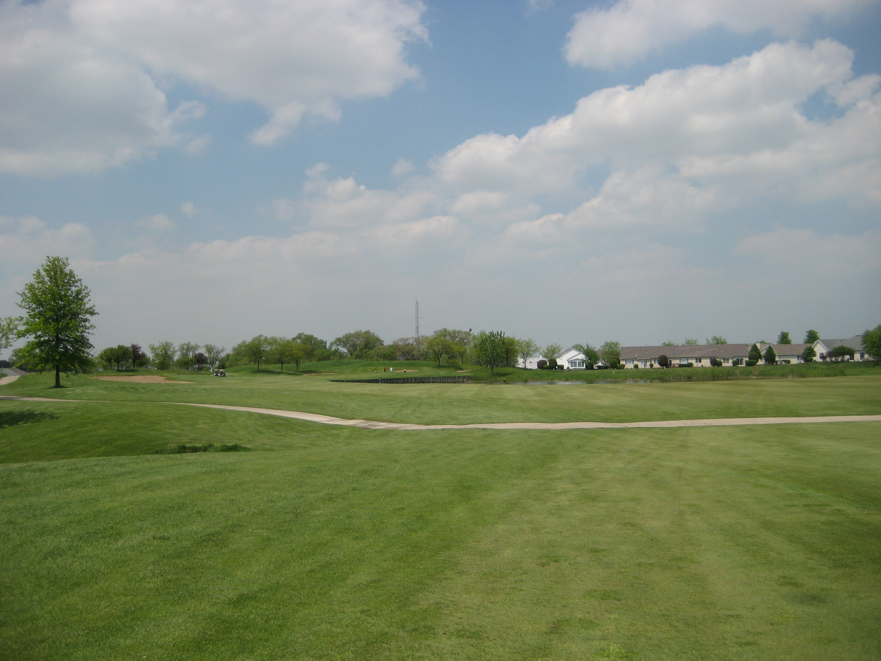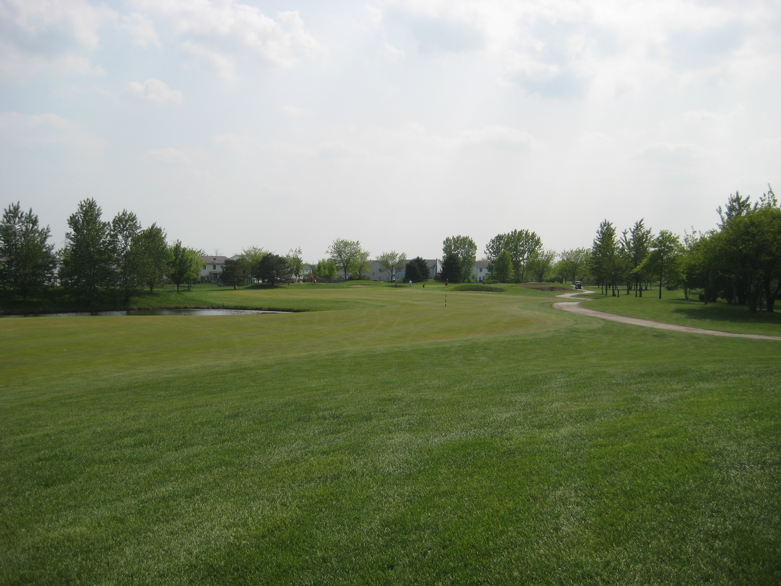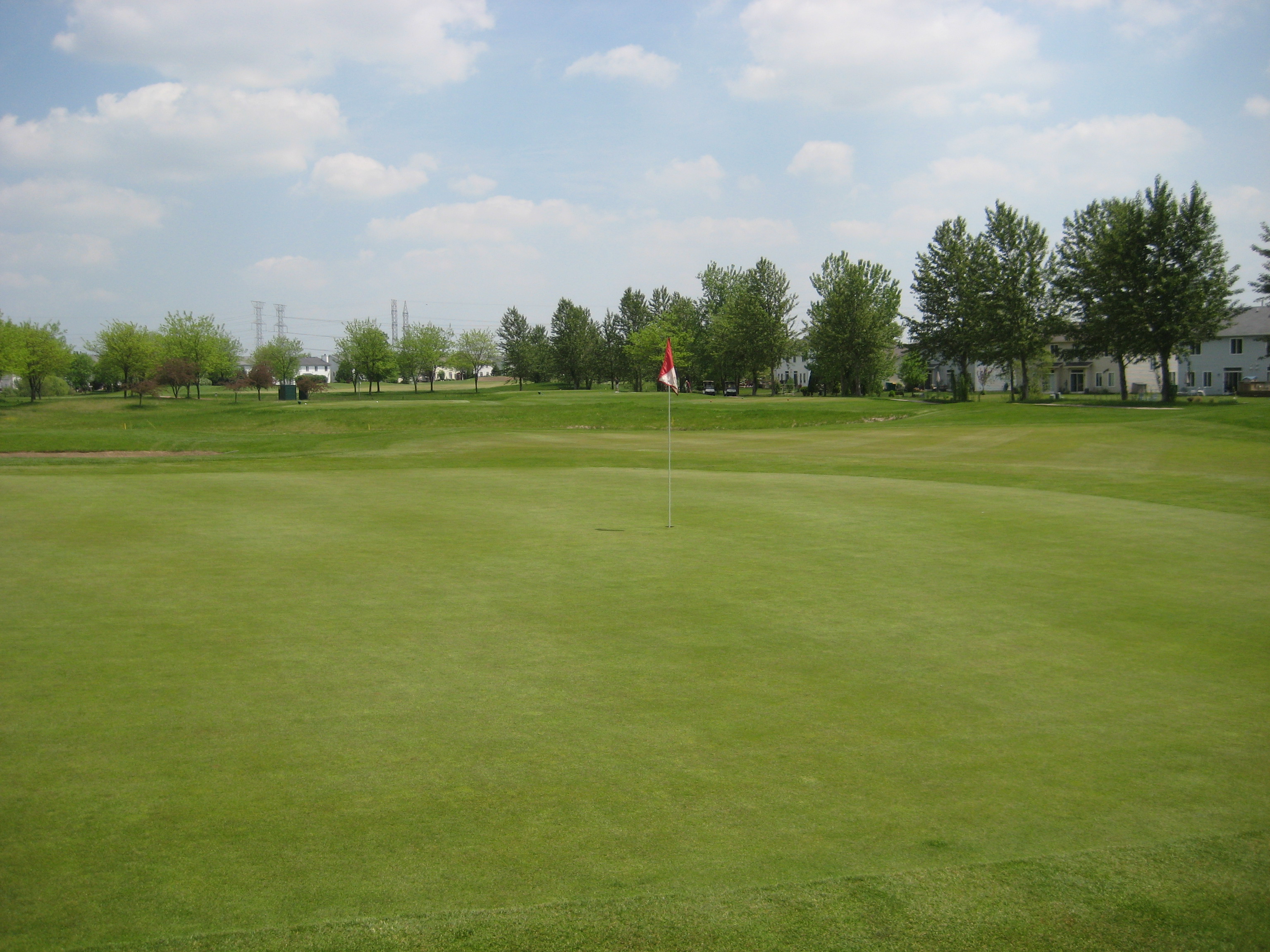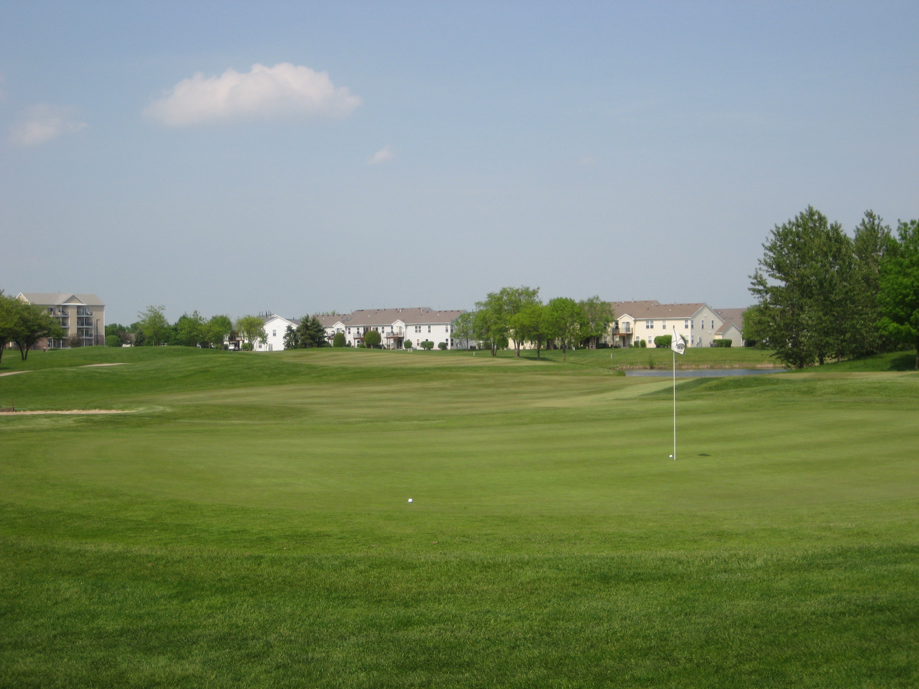 So I have finally played a round in 2011. It has been a long wait but the sticks have finally touched the grass. The weather in Chicago has just been miserable this spring, but my season has begun. My first round of the year was played at The Links at Carillon in Plainfield. The Links was a perfect course to kick off the season and shake the cobwebs off. The Links at Carillon is a 27 hole facility, and I got the chance to play the Red and White courses. The Red course played at 3,391 yards with a rating/slope of 72.5/125. The White course played at 3,438 with a rating/slope of 71.1/123. Both courses are very similar in layout and condition, and I believe the Blue course is as well, but a little shorter in yardage. Overall, the course was extremely flat with not that much undulation in the greens except for a few holes. I found that the course provided many challenging holes, but the par 3s were a big disappointment……no wow factor there. The course is surrounded by homes on every hole, which is something I don’t particularly like, but there is still plenty of room for errant shots. There is a driving range, practice green, and chipping area. This course definitely deserves a try for Chicagoland golfers. Enjoy a hole-by-hole review with pictures below.
