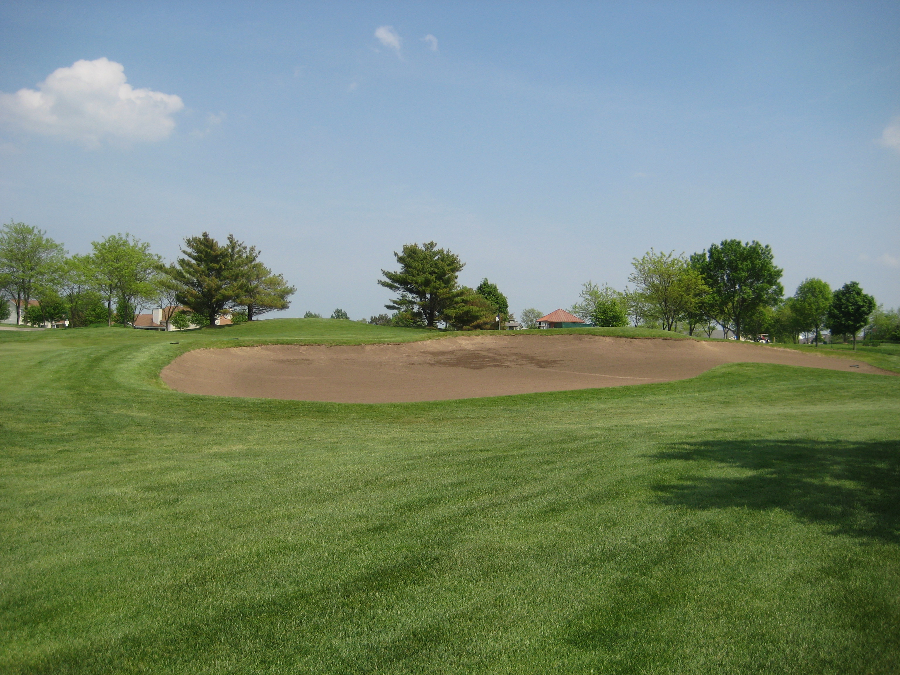 9th Hole: Par 4, 378yds. This is hole requires you to be straight off the tee as 3 bunkers guard the fairway. Once you get by those 3 bunkers you are faced with one of the bigger green side bunkers I’ve seen in a while. Good finishing hole for this set of 9.