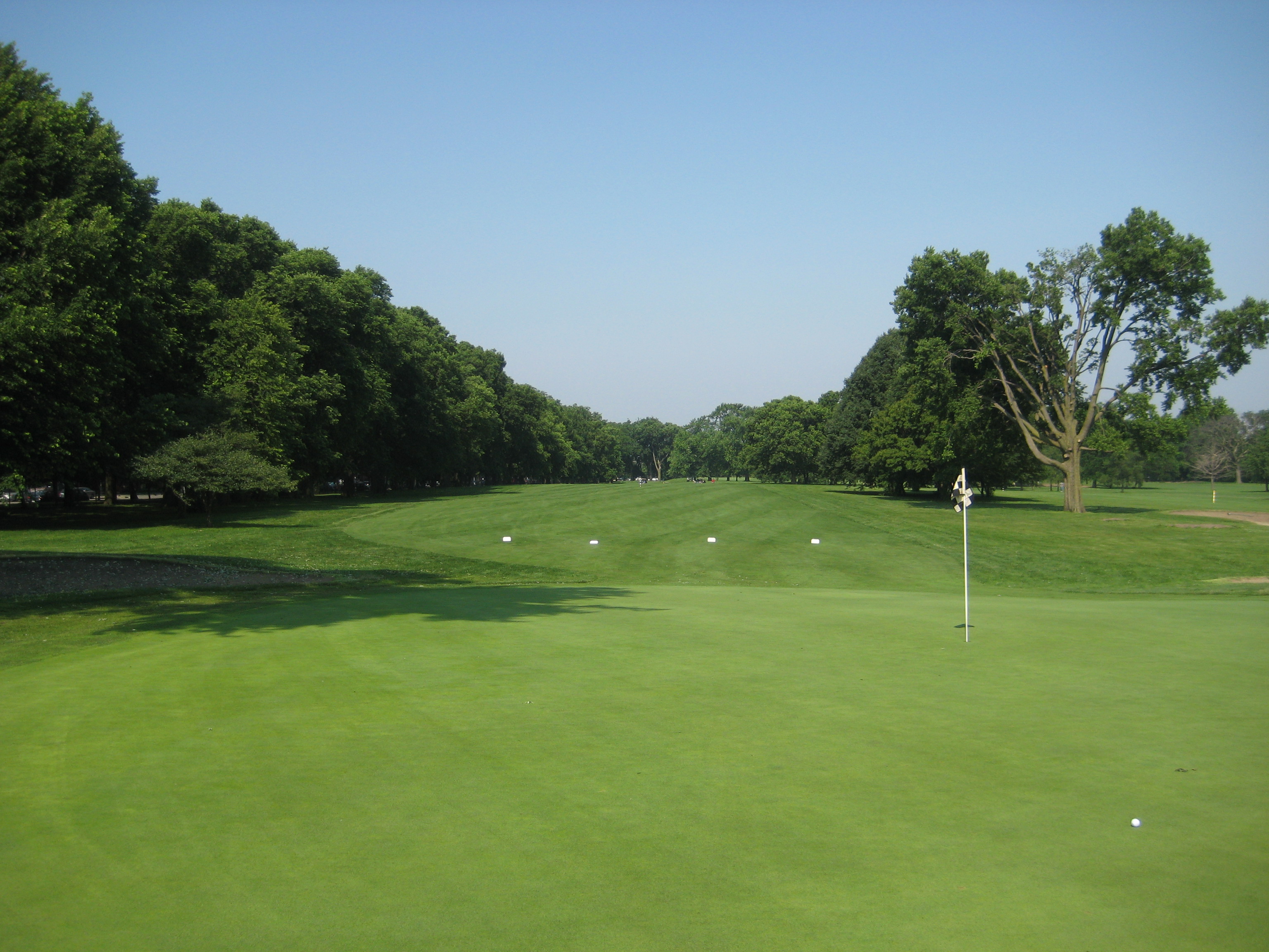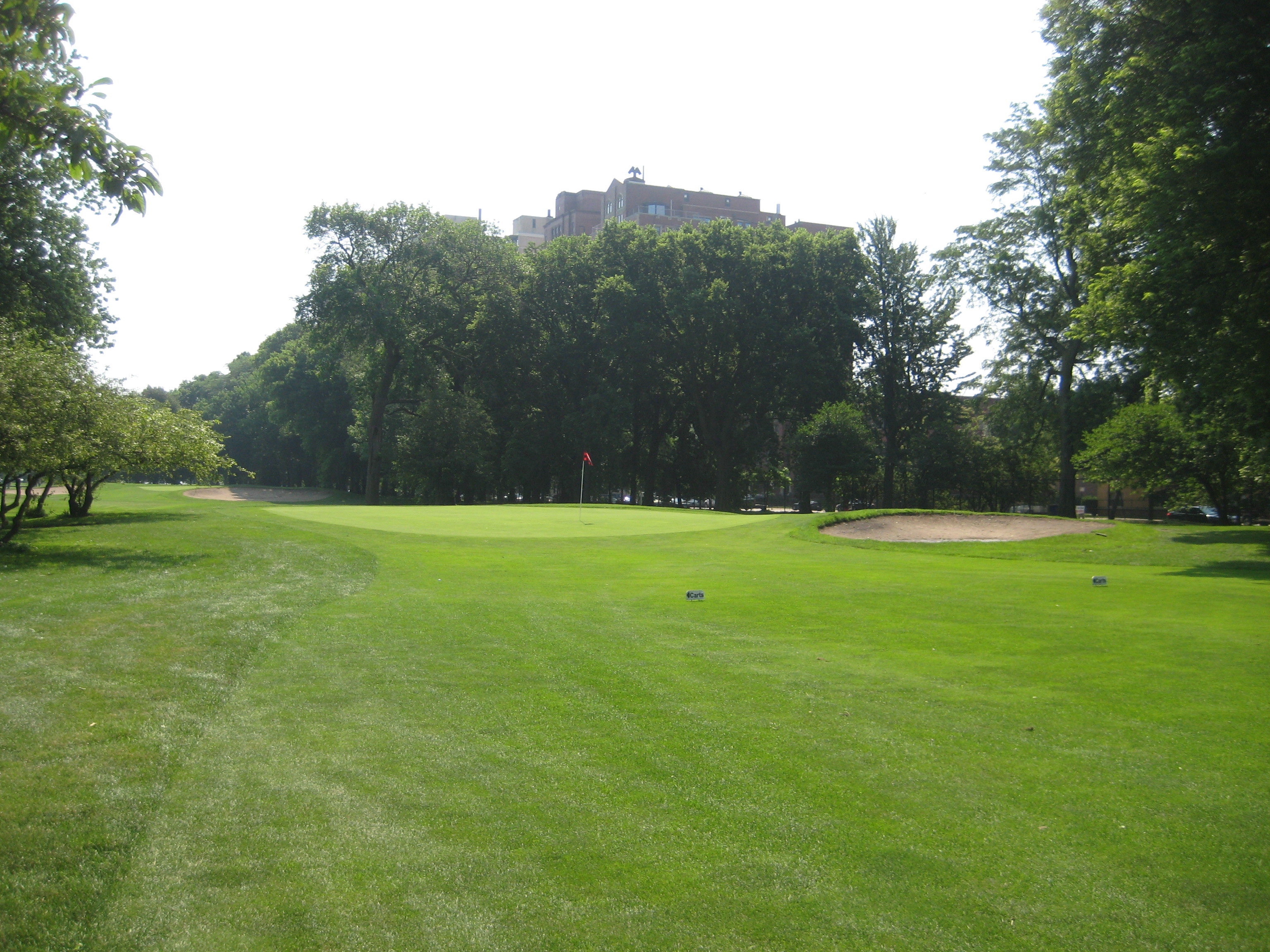 13th Hole: Par 3, 183yds. The 13th is one of the longer par 3’s on the course, with two bunkers guarding the front of the green. From the tee box you can also see the skyline of downtown Chicago. It was cloudy that day so I was only able to make out the Sears Tower (sorry, Willis Tower), but I’m sure on a clear day you can see more of the city.