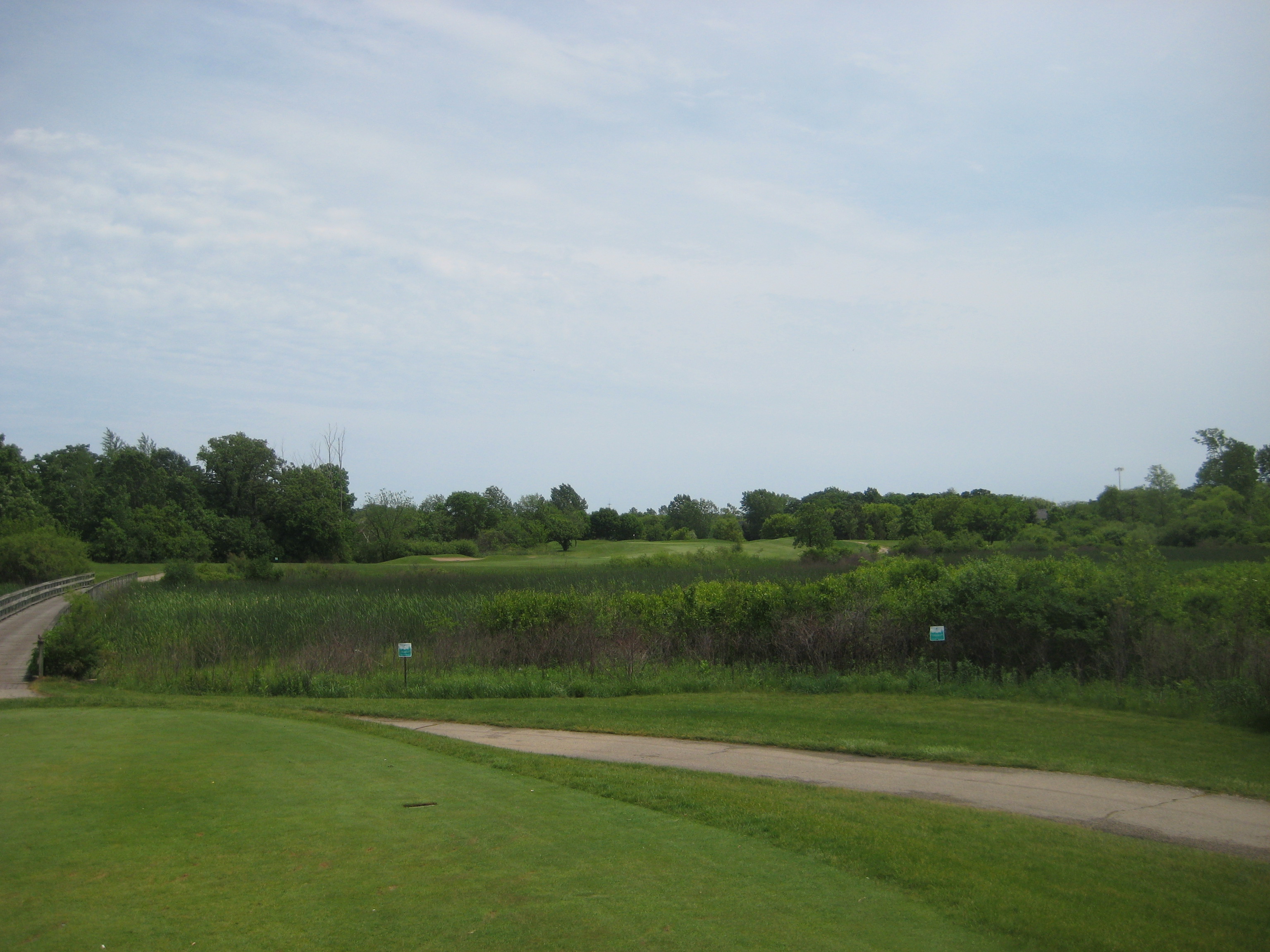 Going into this round of golf I didn’t have high expectations for this course. No one I knew had played it, and I didn’t know much about the course. Well, I was pleasantly surprised by this course. It rained a little that day (which you can tell by the pictures below), but the course was in great condition. I really enjoyed the layout of the course. Surrounded by mature trees, abundance of wetlands and wildlife, and undulating greens, Bittersweet provided a fun and challenging round of golf. Designed by Robert M. Lohmann, Bittersweet plays from 6,751yds from the men’s tips and a rating/slope of 73.3/135, and 5,614yds, 72.8/130 from the women’s tee’s. This course makes a golfer choose their clubs wisely and you will use all the clubs in your bag. I preferred the back nine to the front due to the scenery you experience as the wetlands come more into play. The course offers a grass driving range and chipping and putting practice area. I live in the city, but would drive up to Gurnee to play this course again. If you haven’t played here yet, I do recommend a trip to Bittersweet for your next round.